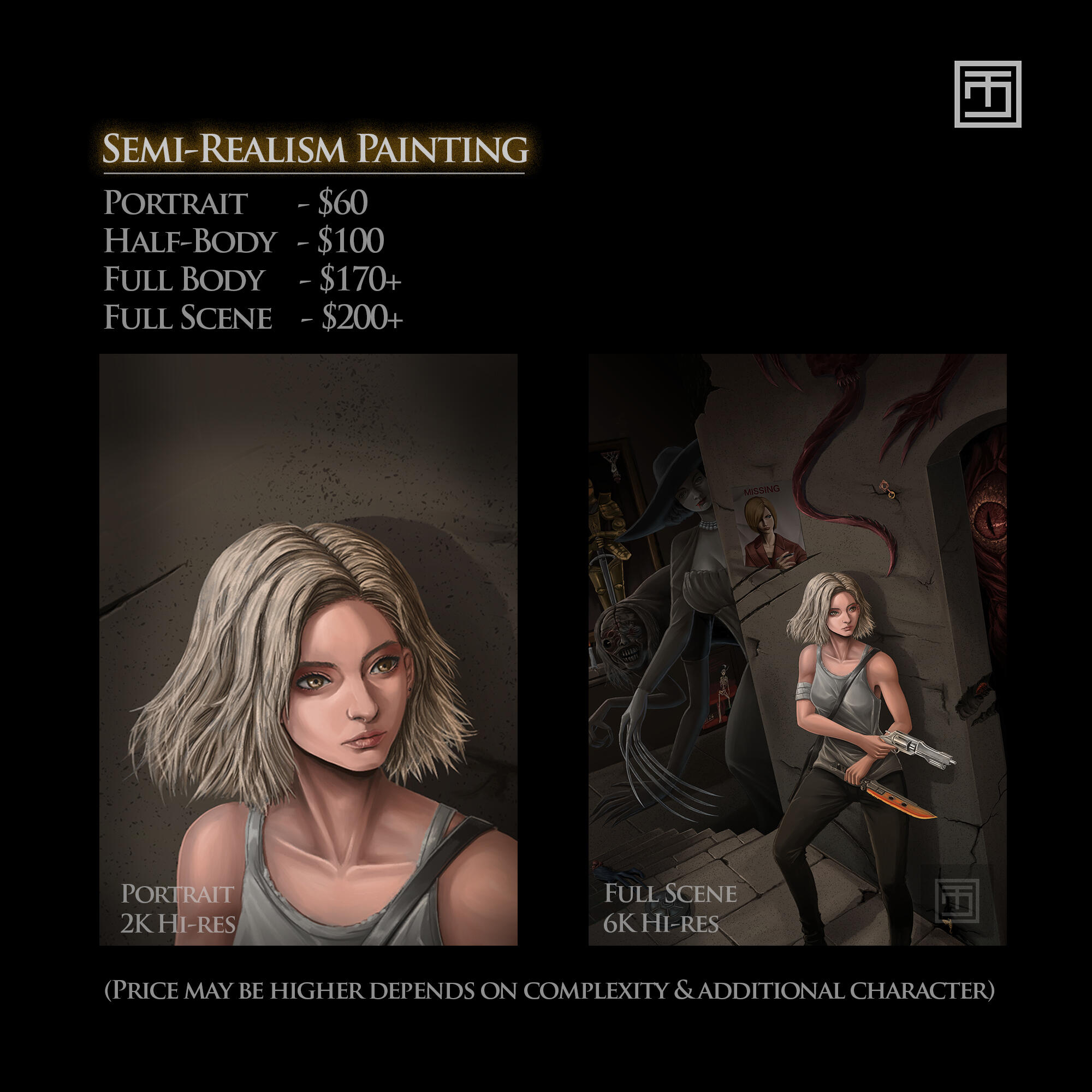 I will create your artwork in high resolution (2K up to 6K+ at 300 DPI), depending on the commission.I do not draw NSFW content. Suggestive or tasteful themes are acceptable for aesthetic purposes.I reserve the right to decline a commission request if it is not suitable for me.As the artist, I retain full rights to the artwork, including the right to display it in my portfolio and post it on social media.